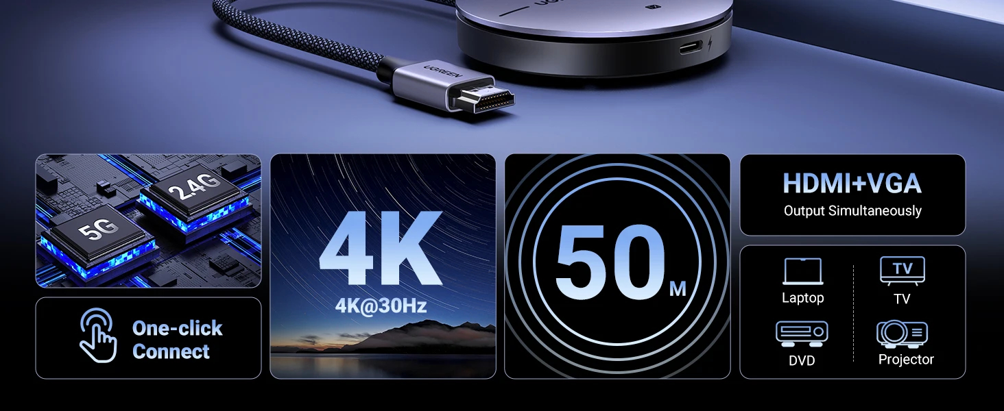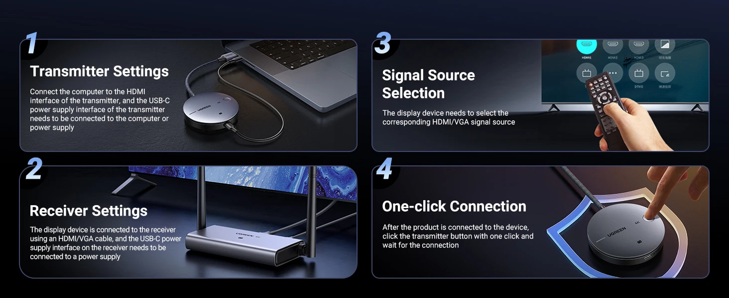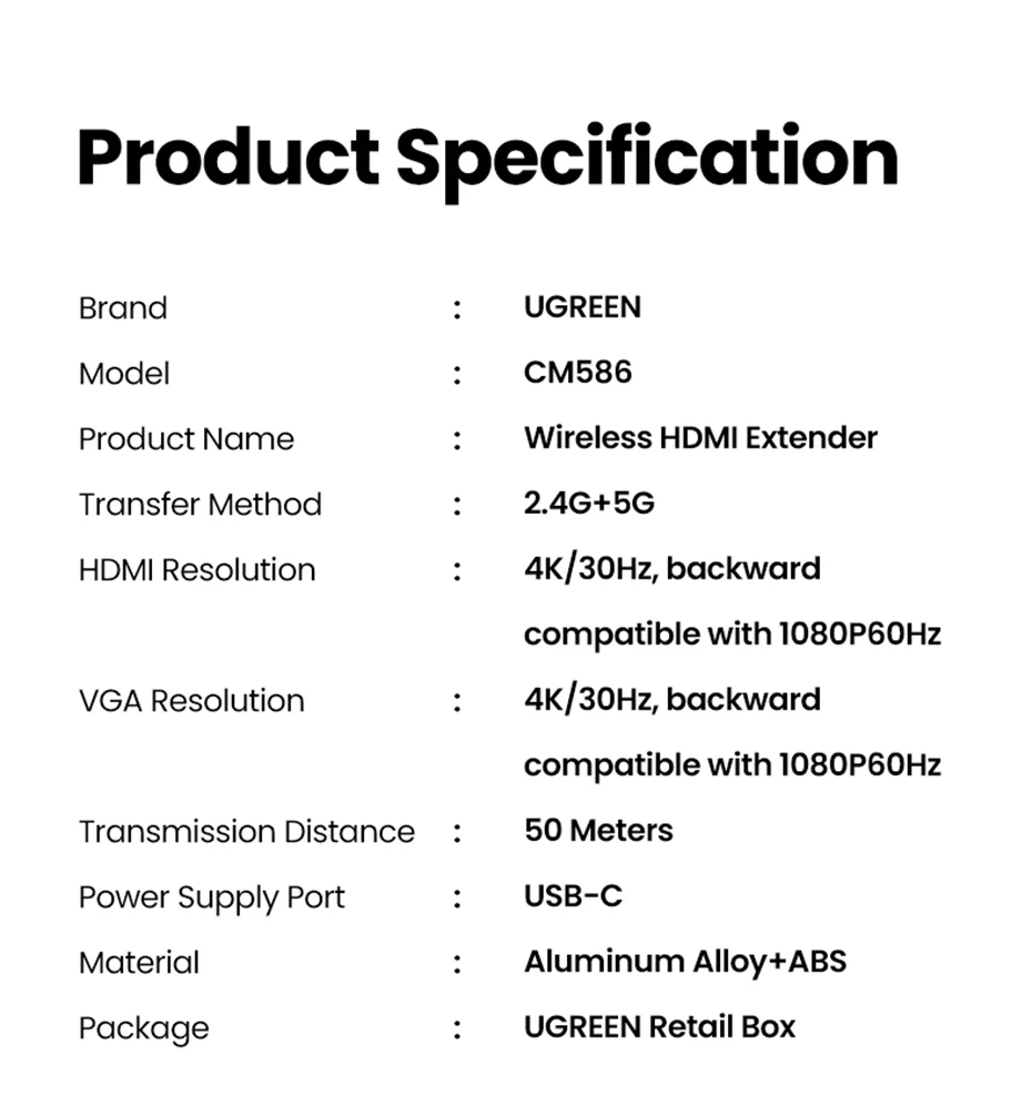 ออกใบกำกับภาษีได้ UGREEN (90909) CM586 4K HDMI Wireless Extender 50M. Video Transmitter & Receiver 2.4GHz/5GHz