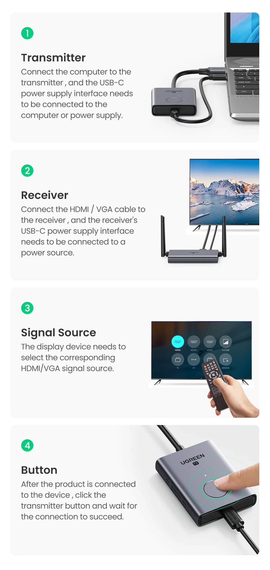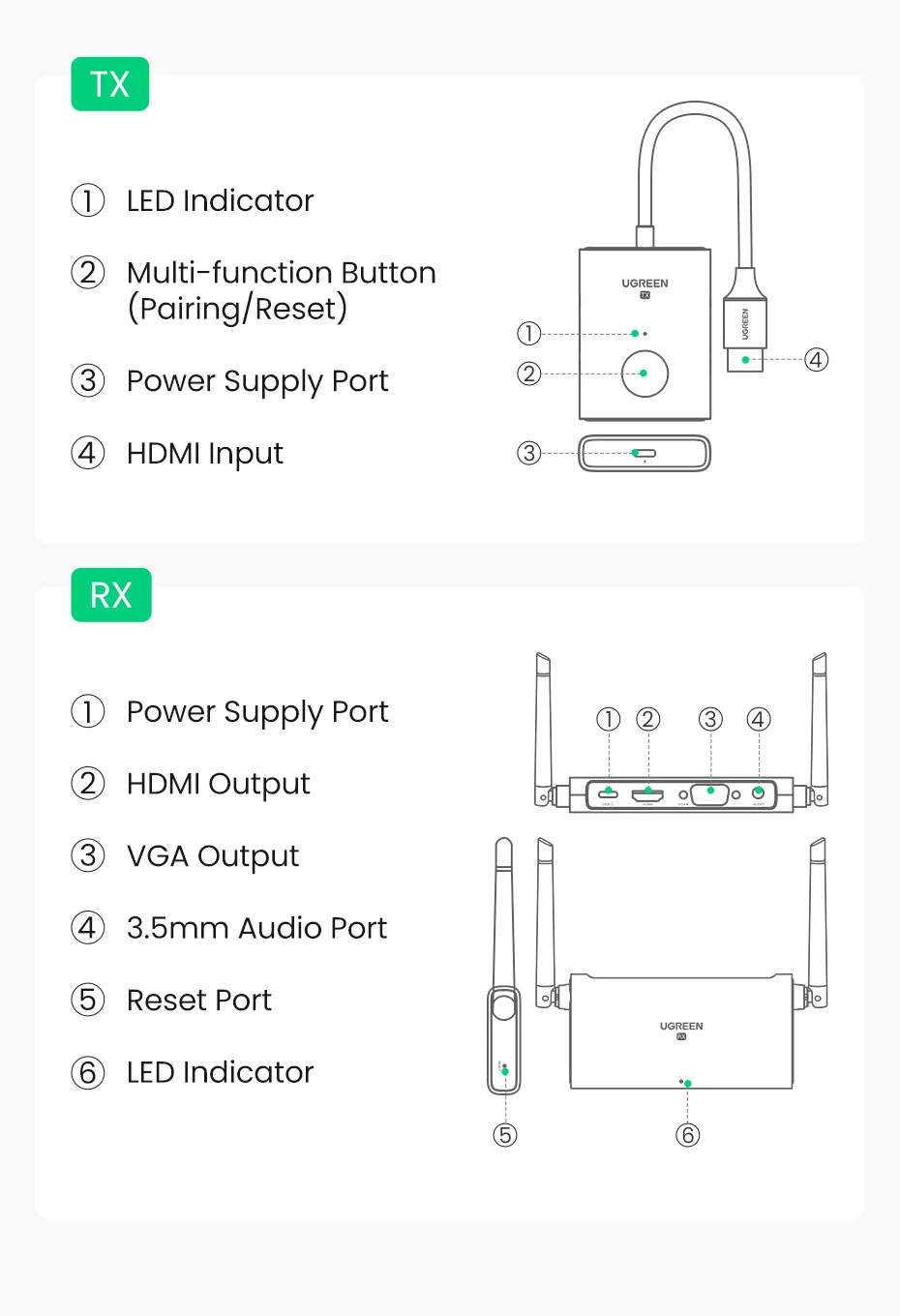 ออกใบกำกับภาษีได้ UGREEN CM506 (50633) HDMI Wireless Extender 50M. Video Transmitter & Receiver 5GHz