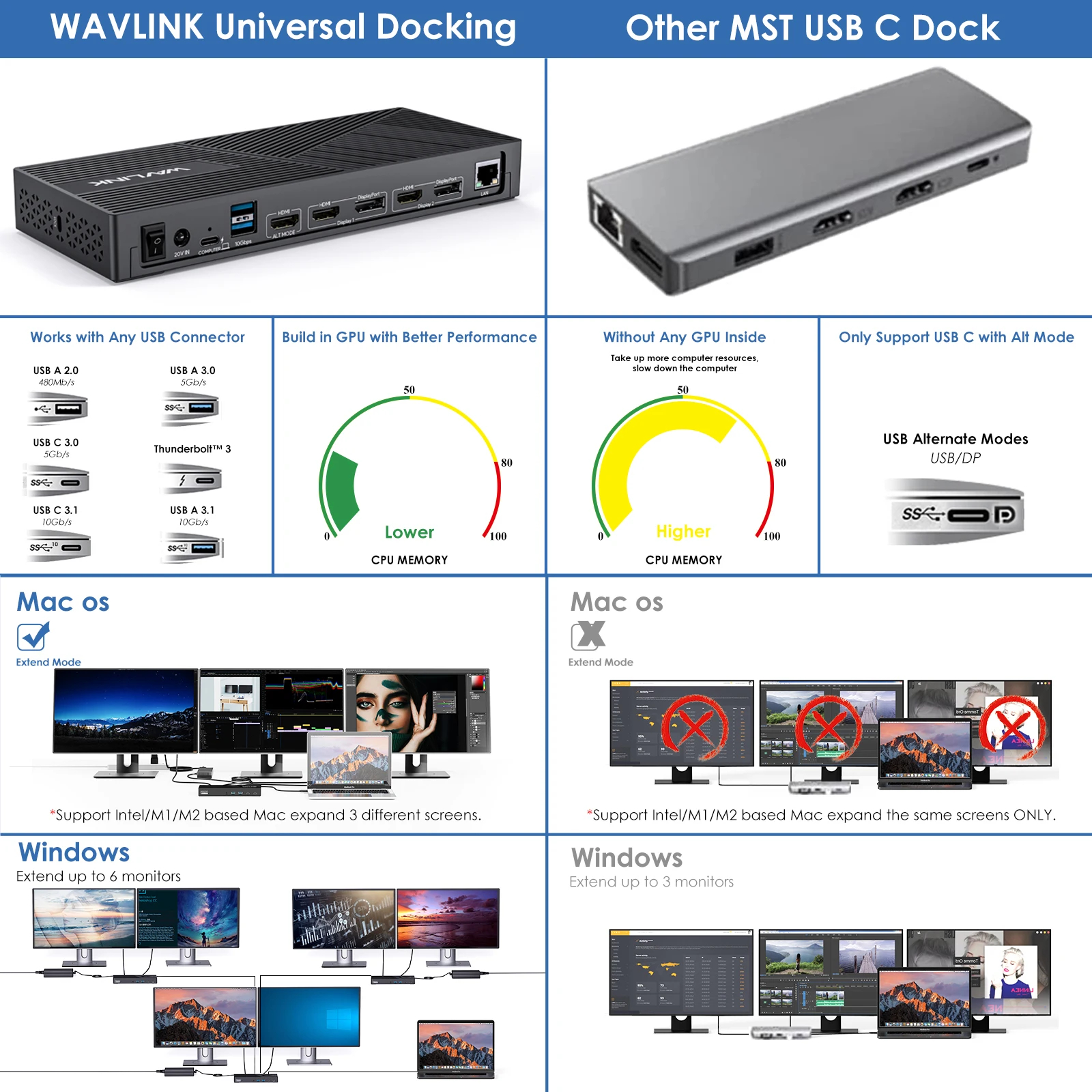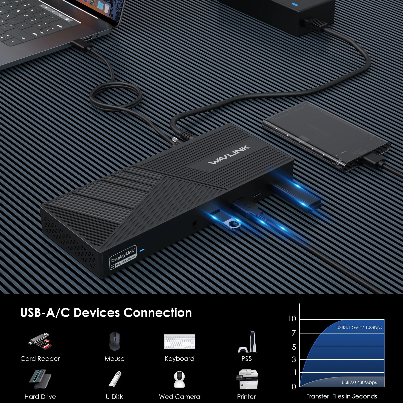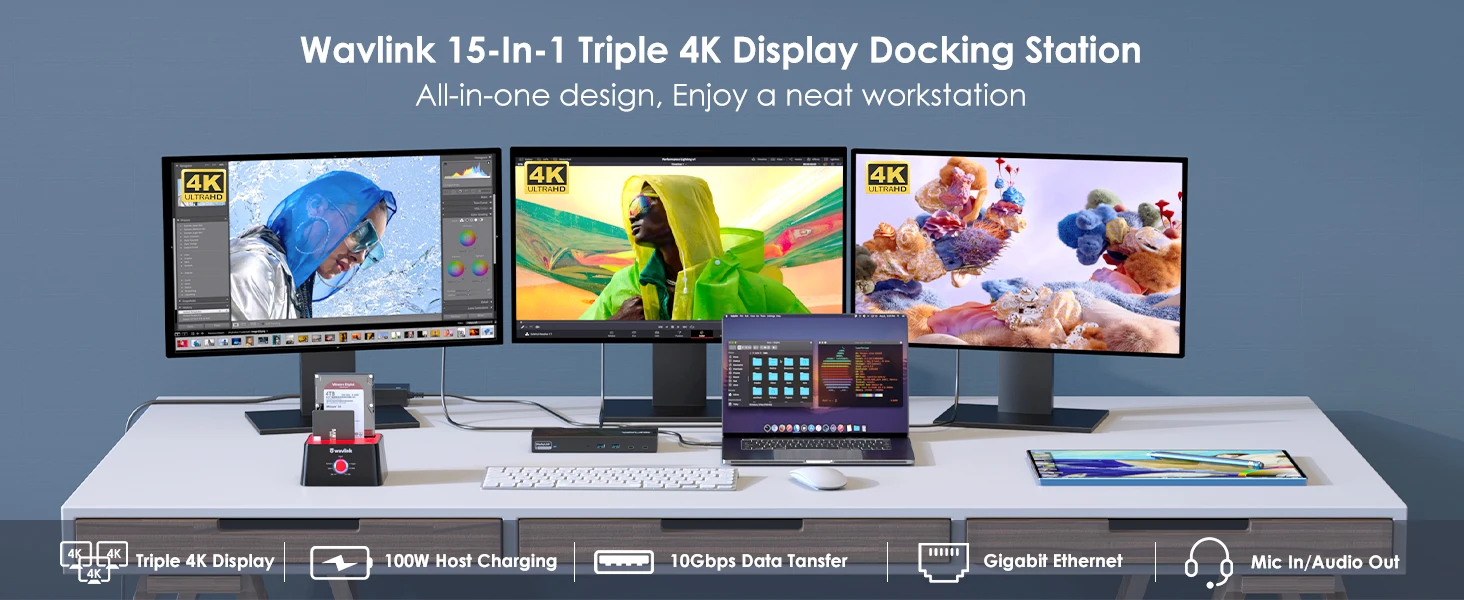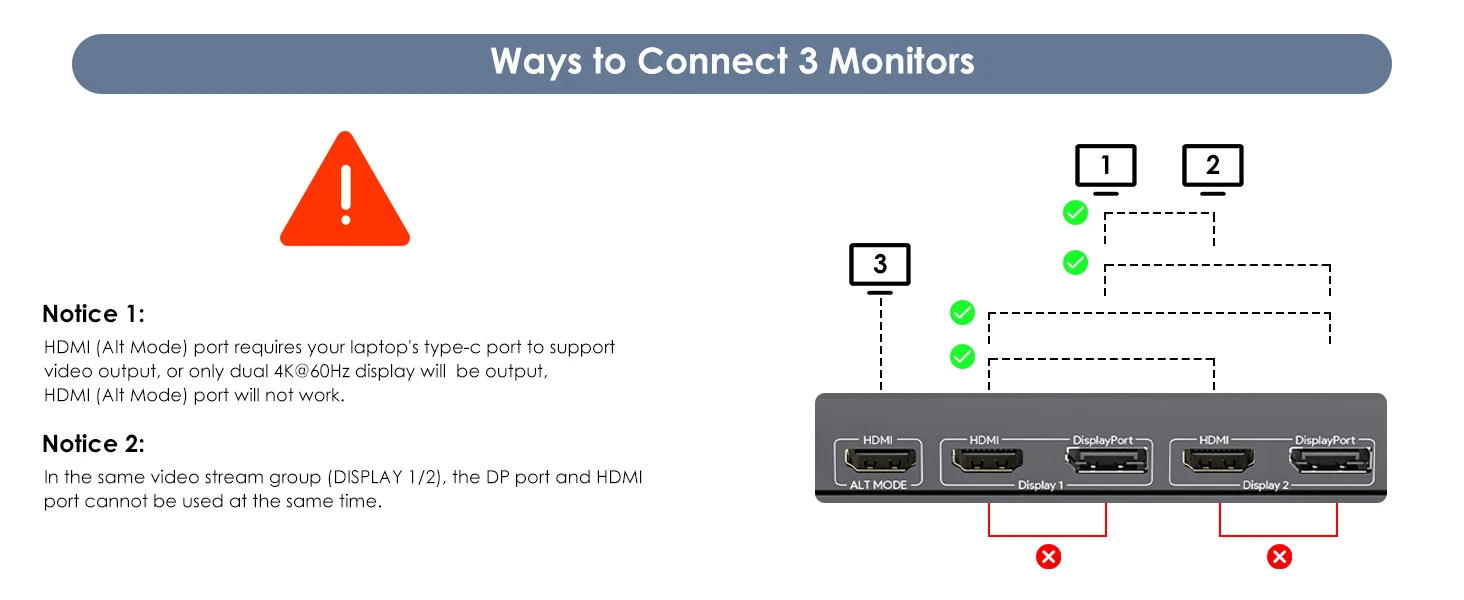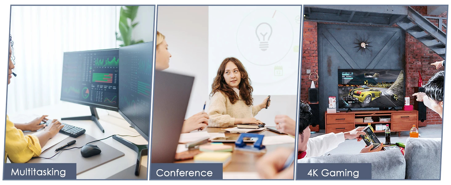 Triple Monitor Support: Supports triple monitors at 4K@60Hz resolution for an exceptional visual experience. Note: HDMI (Alt Mode) port requires your laptop's type-c port to support video output.